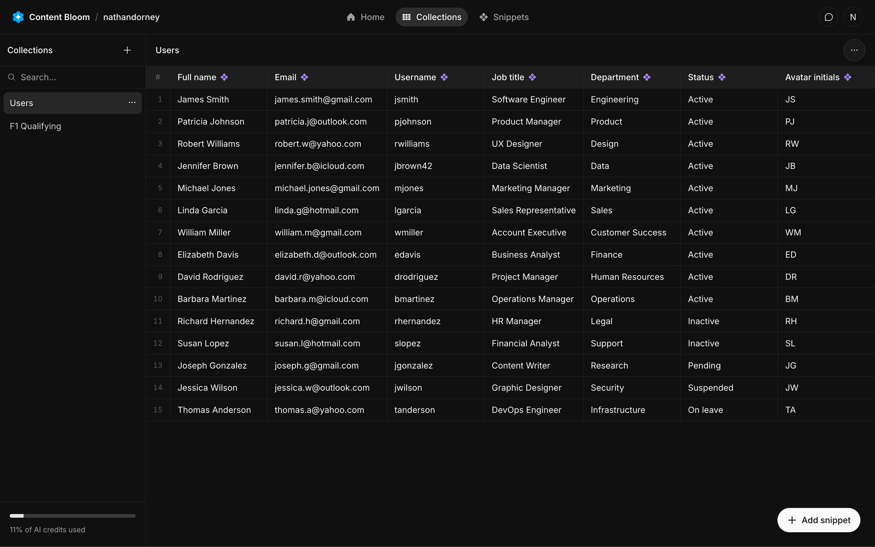 To solve this problem, I built Content Bloom, a platform that generates structured, realistic datasets that your whole team can use. Whether you need data for Figma, code, staging environments, or anywhere else.